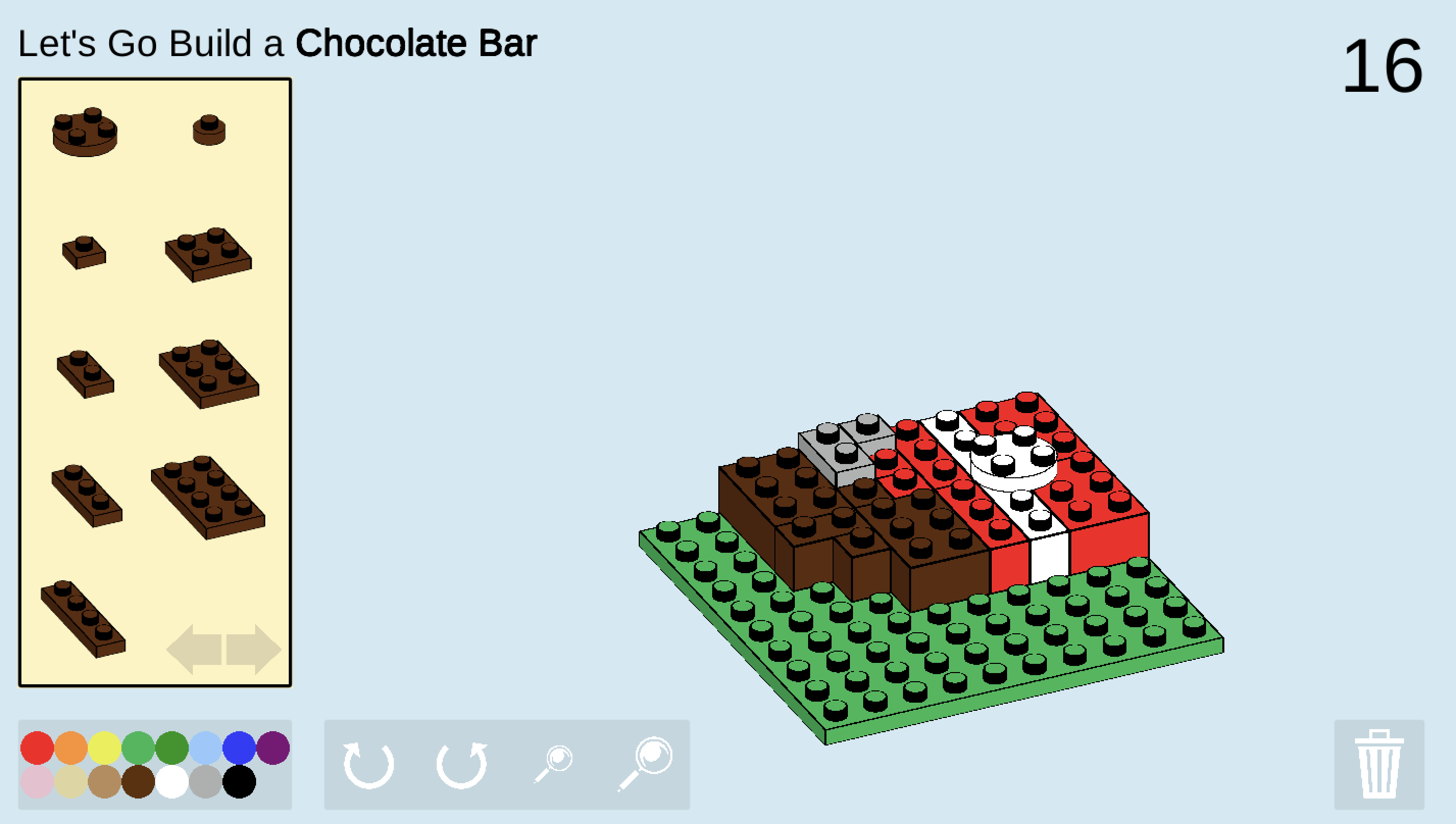 - Click on the arrows to select from more brick types.